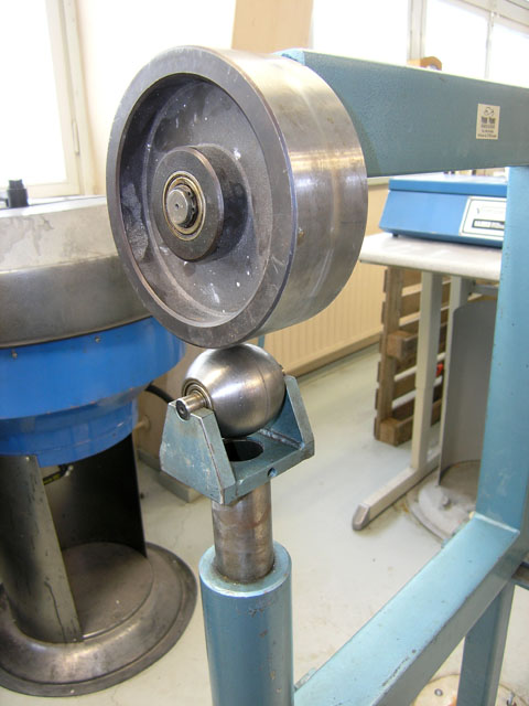Yläpyörä on kiinteästi laakeroitu puomiin ja alapyörä on vaihdettava. Yläpyörän halkaisija on noin 200 mm tässä laitteessa.