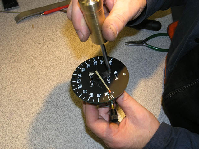Tässä on liukuvasara mittarin neulan irroittamista varten.