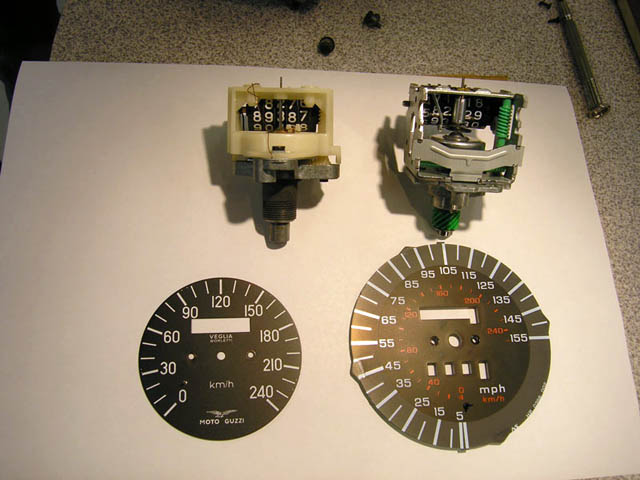 Tässä vertailun vuoksi saman aikakauden Hondan ja Moto Guzzin mittarit.