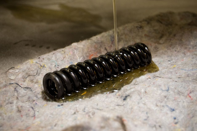 Huuhdeltu ja kuivattu osa valellaan öljyllä. Kappaleen voi tässä vaiheessa myös keittää öljyssä, mikä lisää korroosiokestävyyttä. Mikäli kappaletta ei öljytä, alkaa pinta vähitellen ruostua.