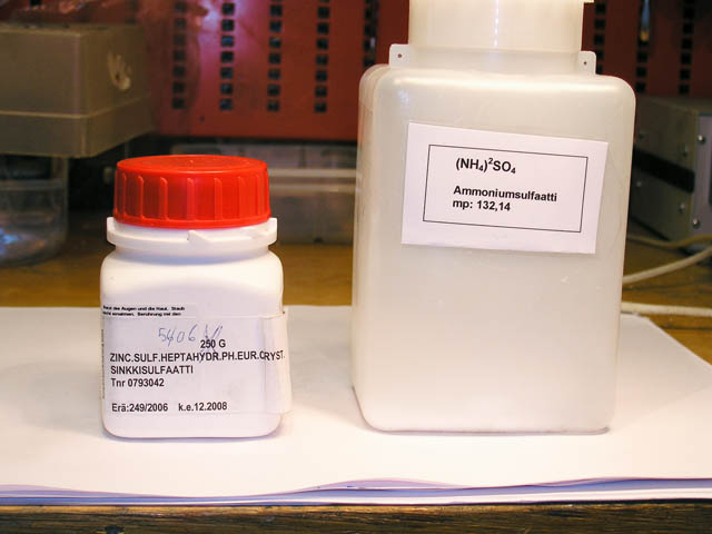 Sinkki- ja ammoniumsulfaatti ovat jauhemaisessa muodossa apteekkitavarana.
