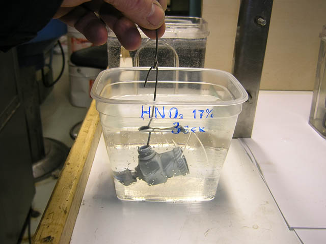 Kappale peitataan ennen käsittelyä hapossa.